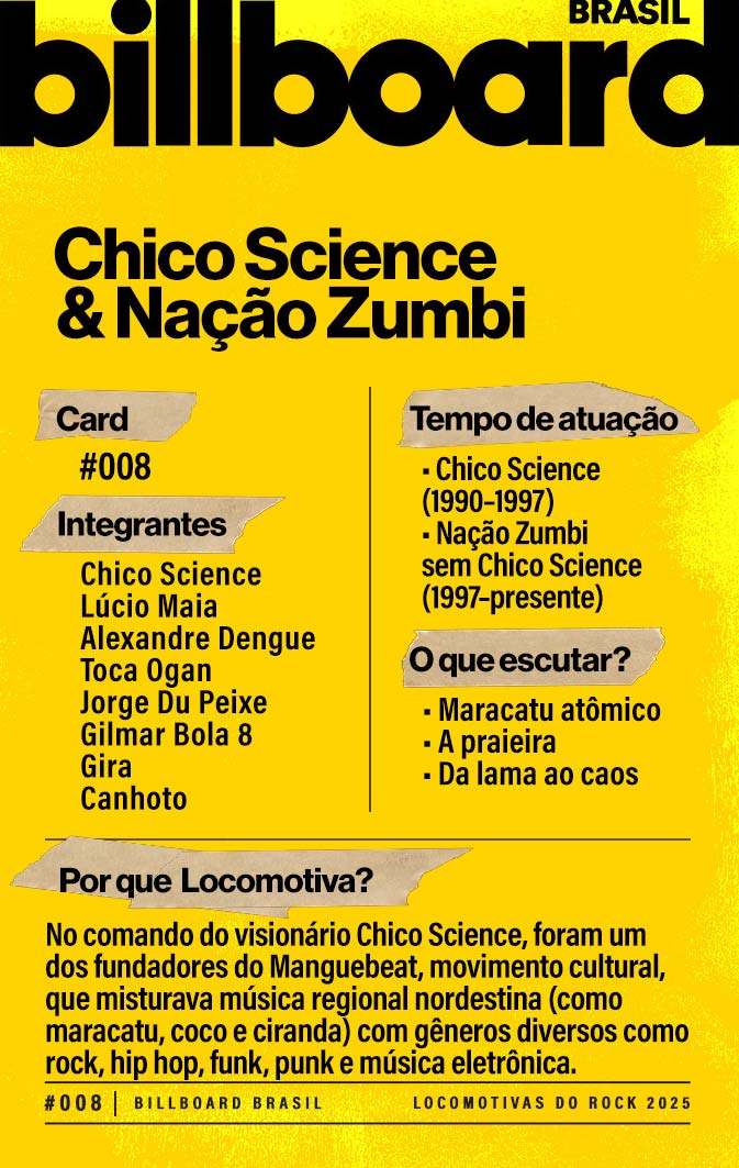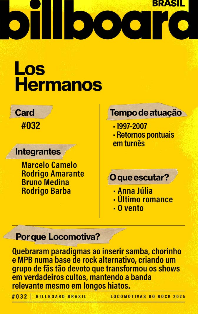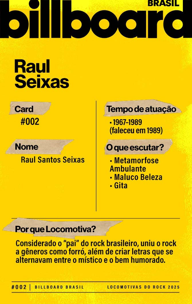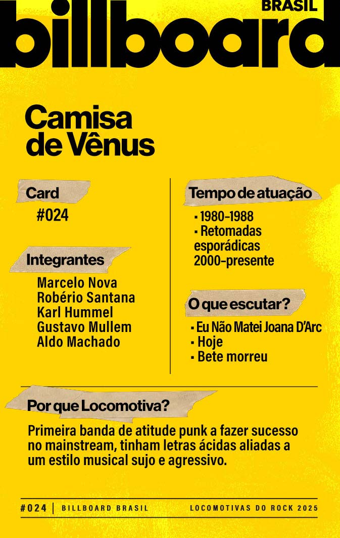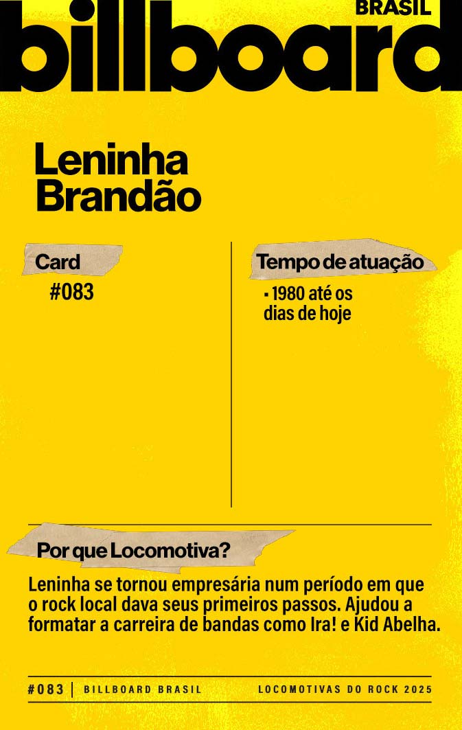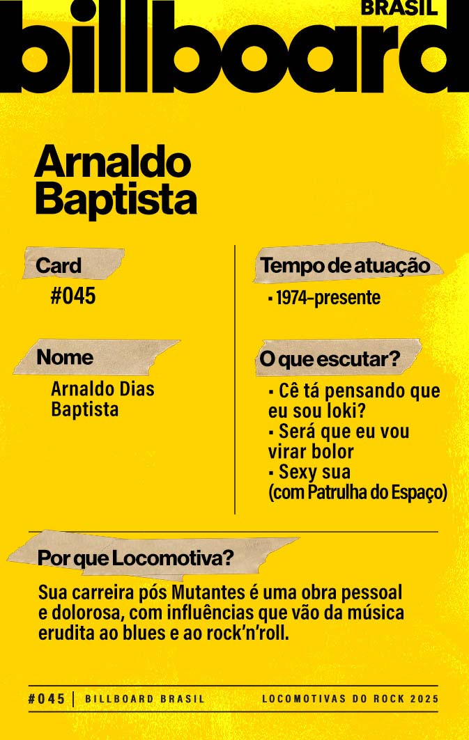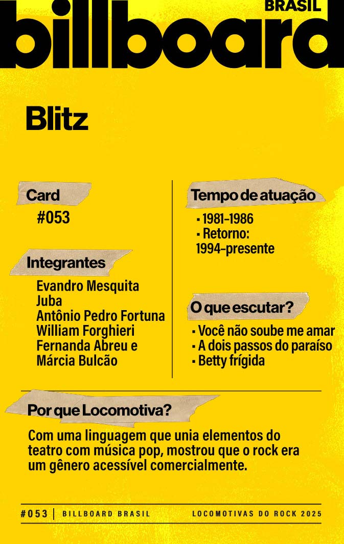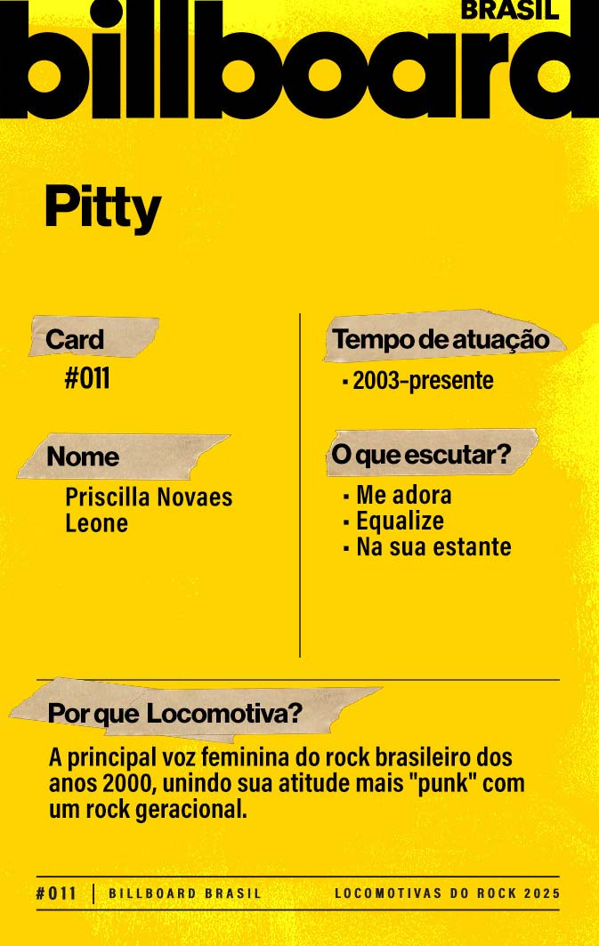 A lista a seguir celebra quem fez do rock nacional um motor cultural incansável, movido por visão, atitude e paixão. Billboard Brasil Locomotivas do Rock é um tributo a cem nomes que impulsionaram o gênero e tornaram sua trajetória impossível de frear.