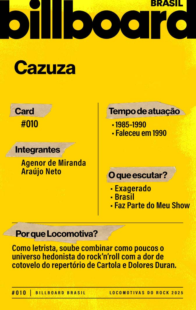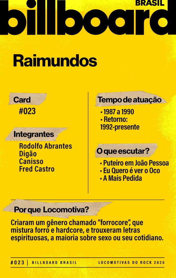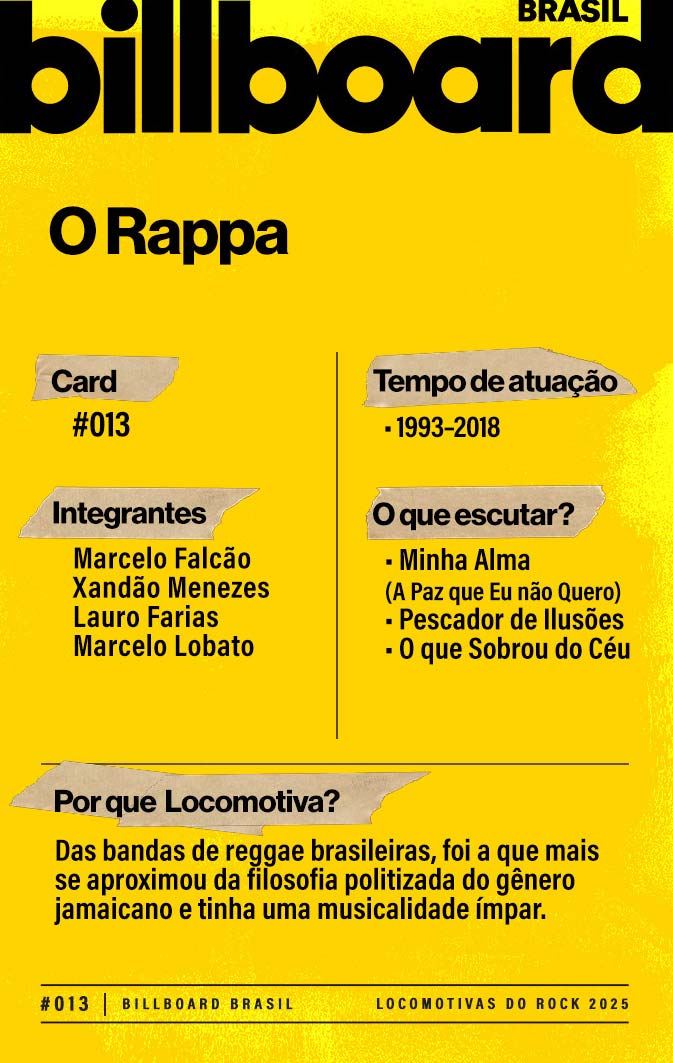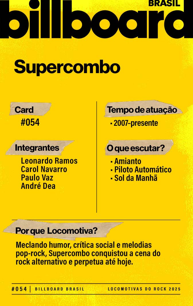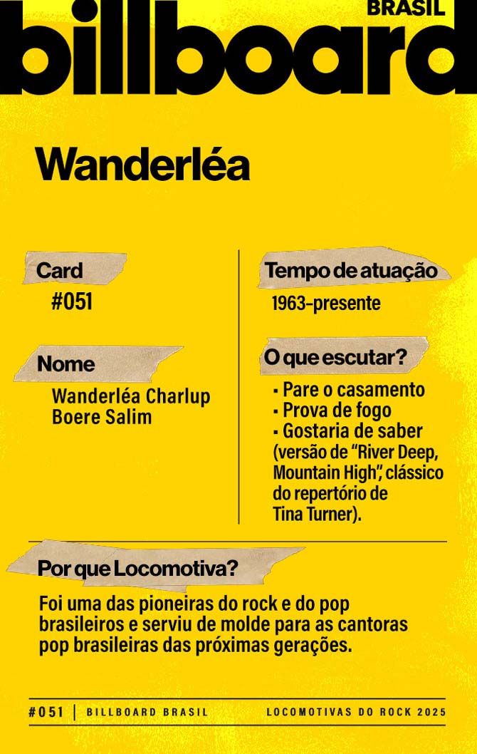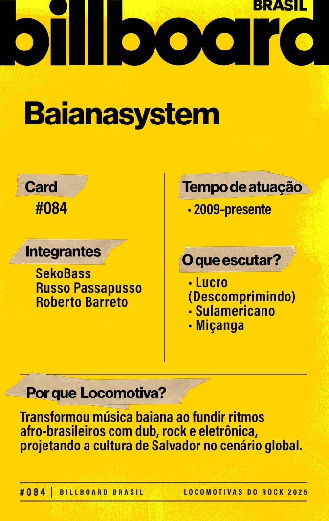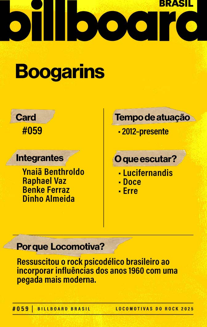 A lista a seguir celebra quem fez do rock nacional um motor cultural incansável, movido por visão, atitude e paixão. Billboard Brasil Locomotivas do Rock é um tributo a cem nomes que impulsionaram o gênero e tornaram sua trajetória impossível de frear.