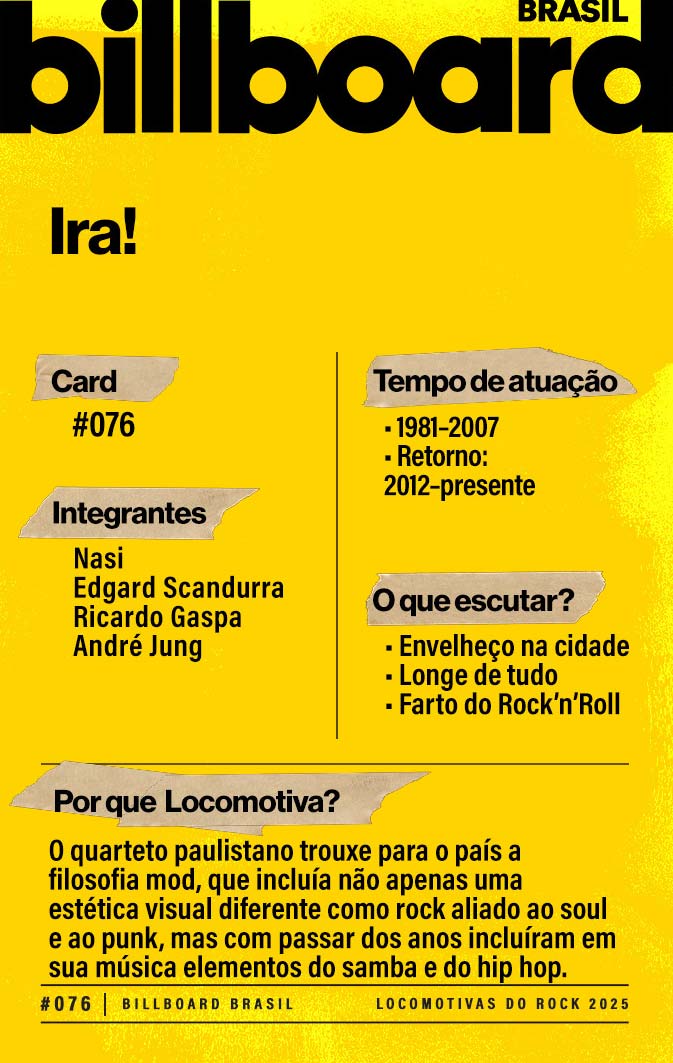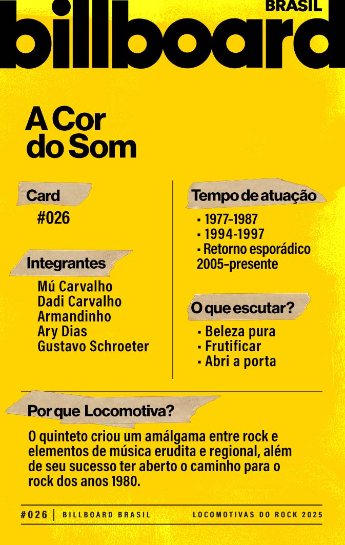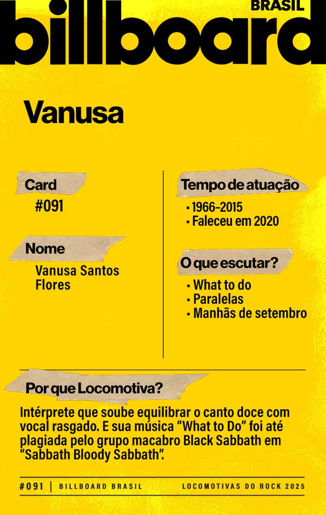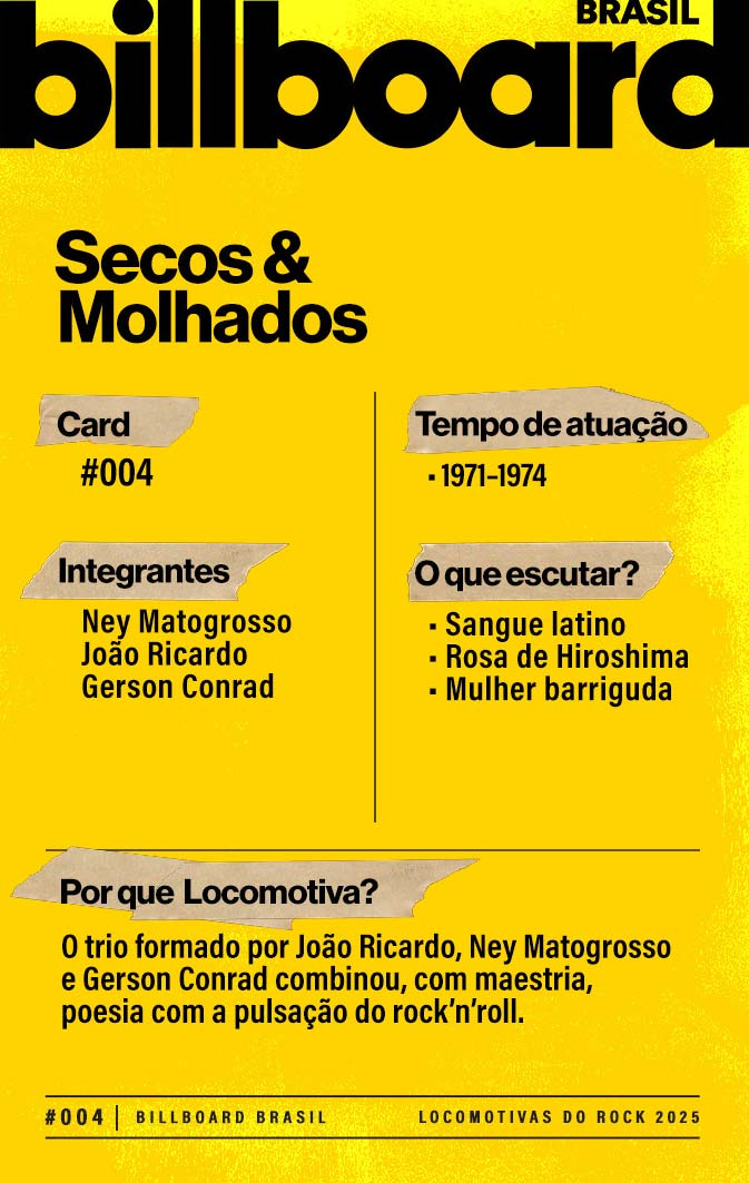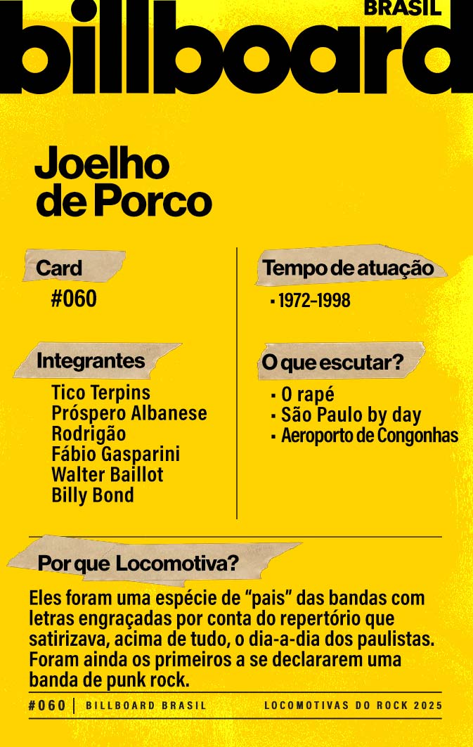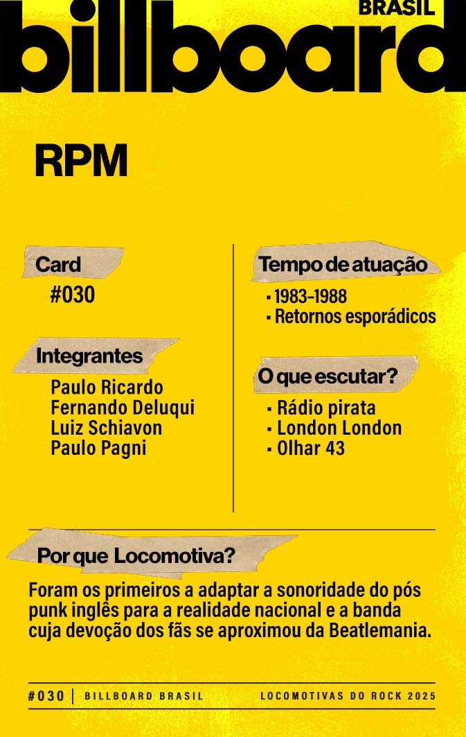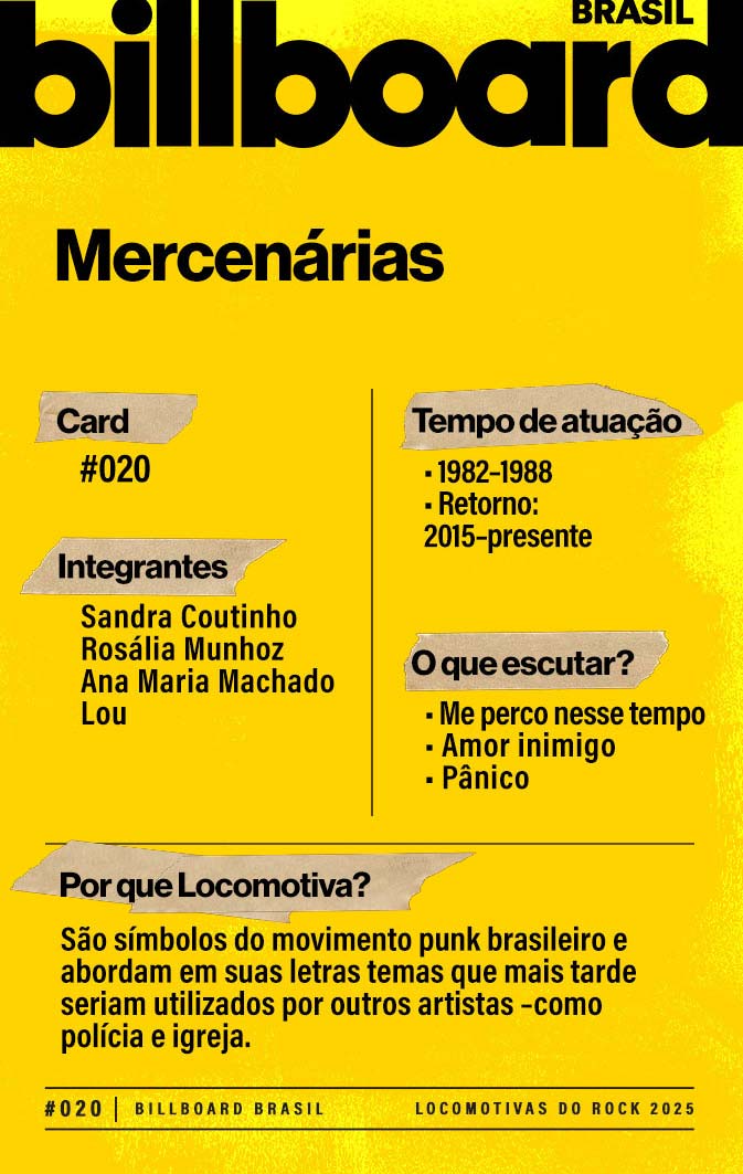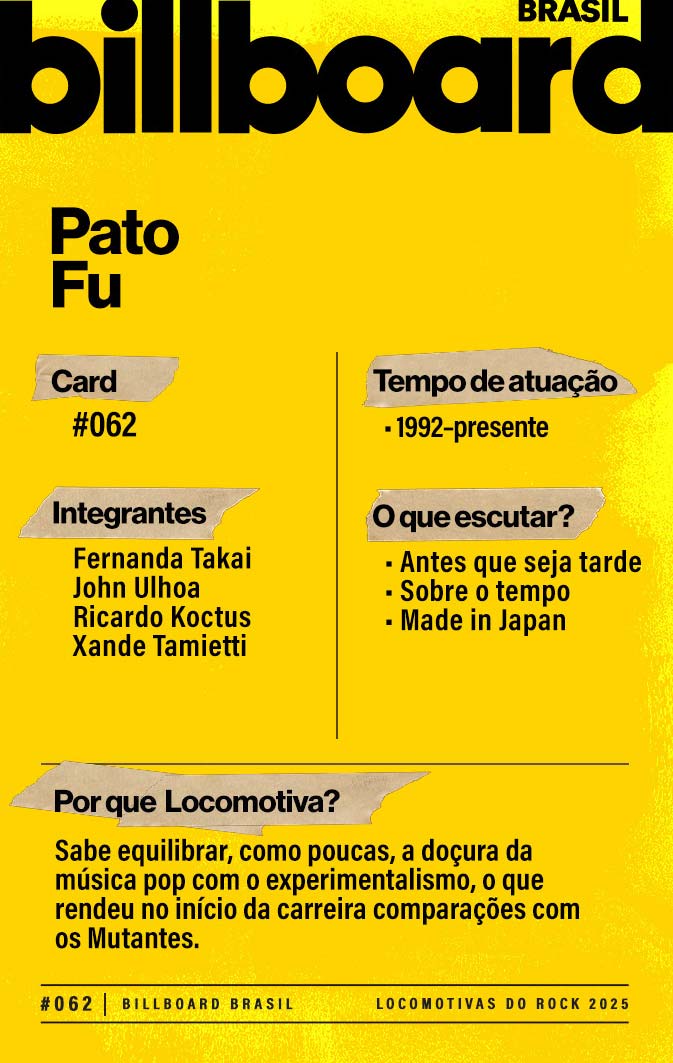A lista a seguir celebra quem fez do rock nacional um motor cultural incansável, movido por visão, atitude e paixão. Billboard Brasil Locomotivas do Rock é um tributo a cem nomes que impulsionaram o gênero e tornaram sua trajetória impossível de frear.