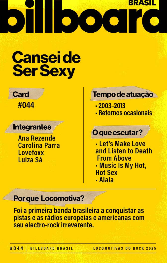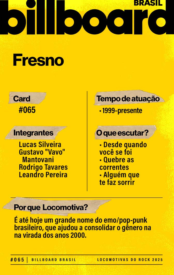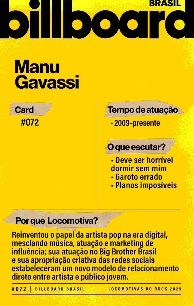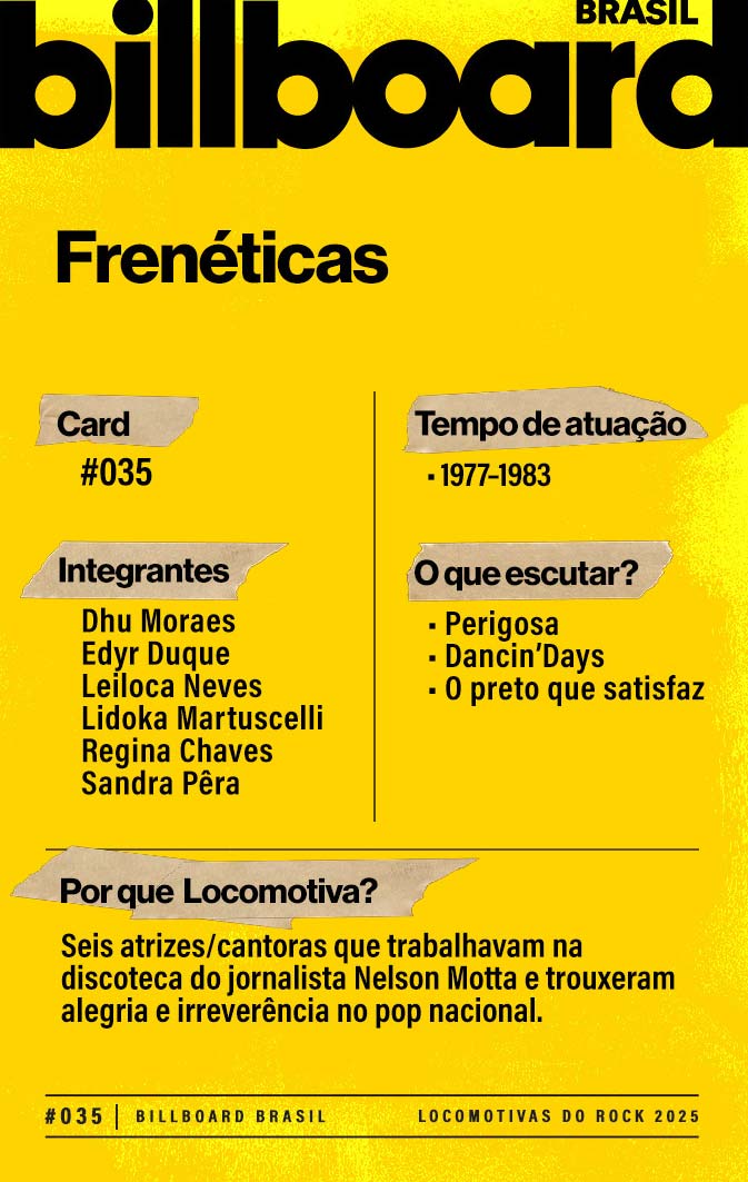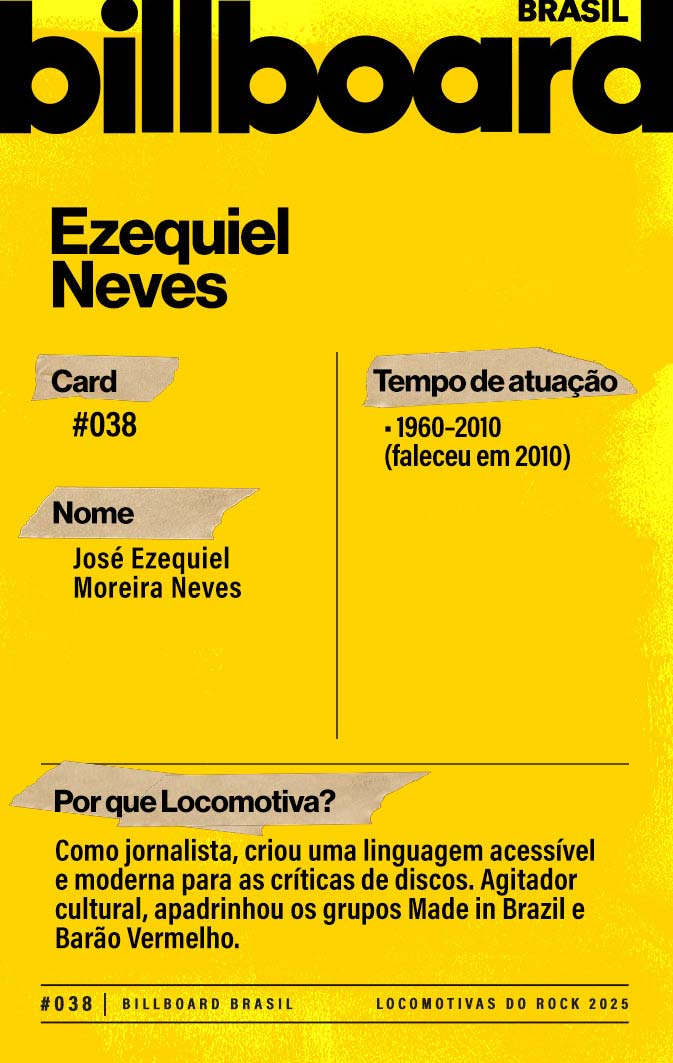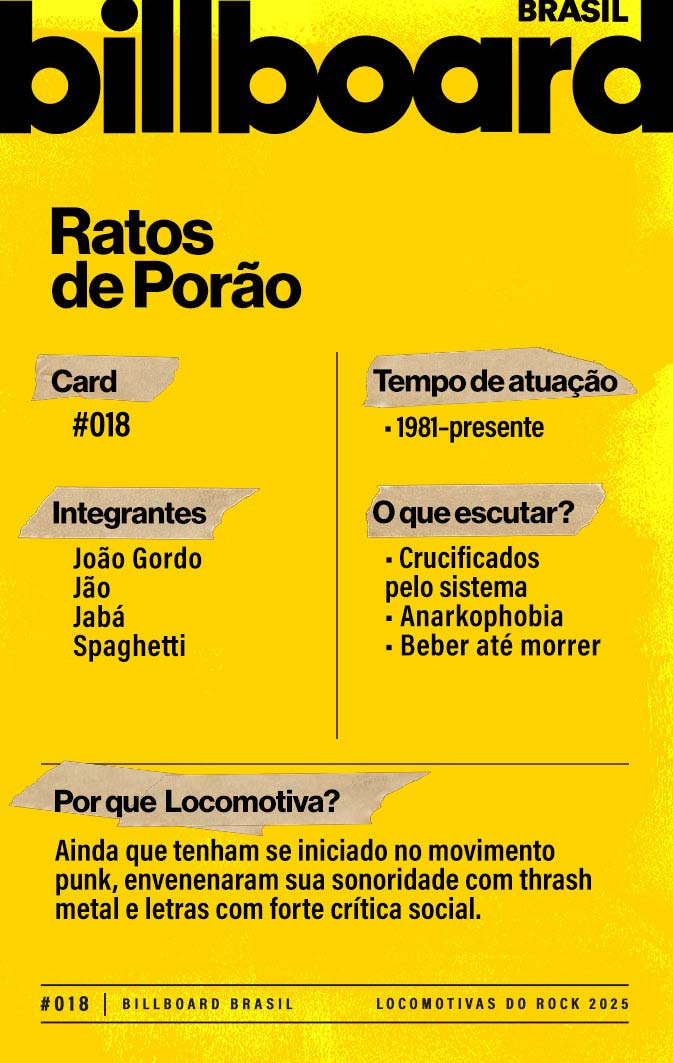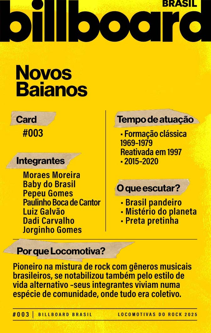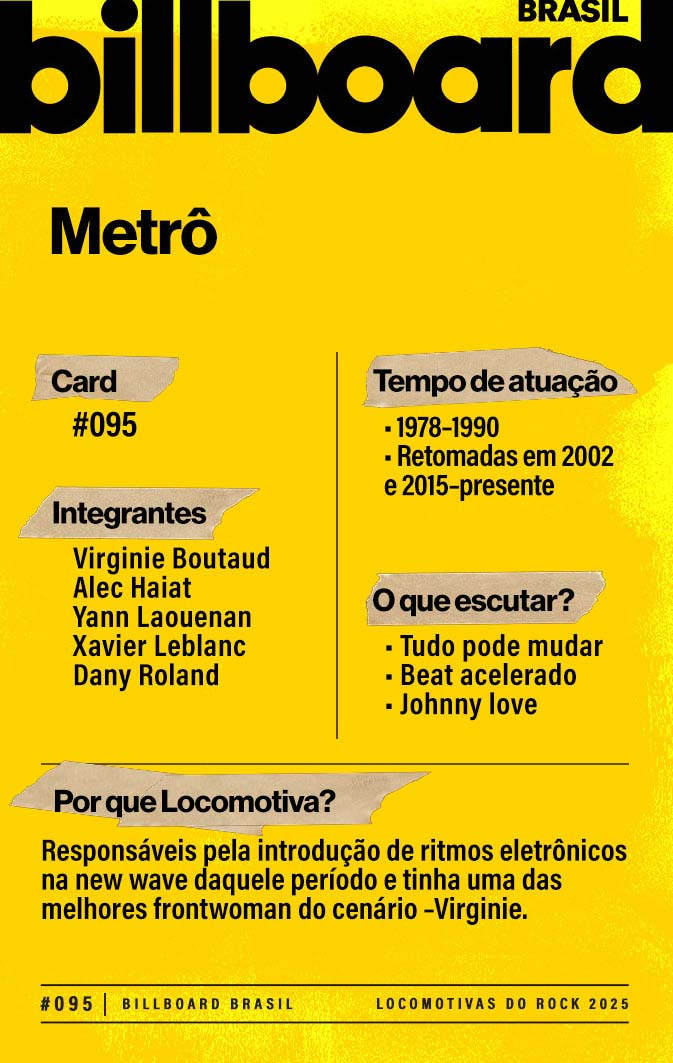 A lista a seguir celebra quem fez do rock nacional um motor cultural incansável, movido por visão, atitude e paixão. Billboard Brasil Locomotivas do Rock é um tributo a cem nomes que impulsionaram o gênero e tornaram sua trajetória impossível de frear.