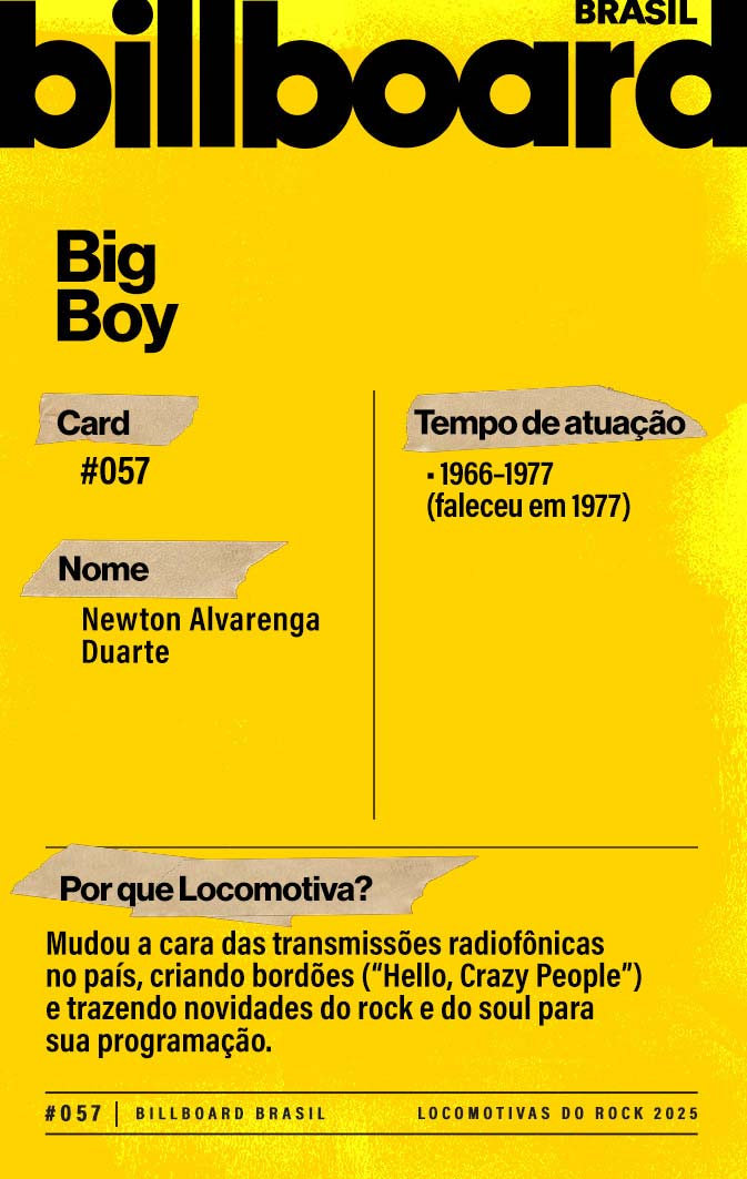 Baixe e CompartilheBrilhou inicialmente como DJ da Rádio Mundial. Ele tem feitos memoráveis, como ser o primeiro DJ a tocar "Let it Be", dos Beatles, e promover bailes de soul e funk na zona norte do Rio. Big Boy morreu em 1977, de um ataque de asma. Tinha 33 anos.