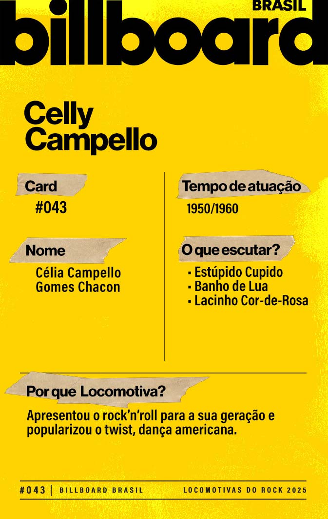 Nora Ney gravou o primeiro rock ("Ronda das Horas", de 1955, versão de "Rock Around the Clock"), mas Celly levou o gênero para a sua geração. Cantora infantil, em 1959 gravou "Estúpido Cupido" e popularizou o gênero de vez no Brasil. Celly largou tudo para casar e morreu em 2003.