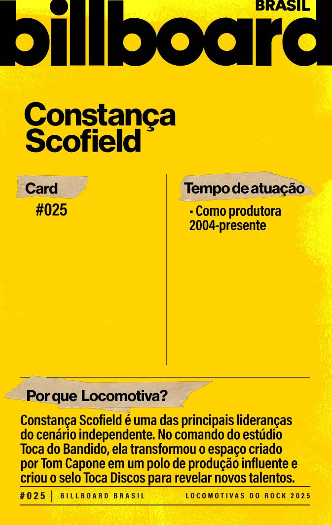 Baixe e CompartilheFormada em música, Scofield consolidou-se como produtora musical e empresária cultural. Após a morte de seu marido Tom Capone (2004), herdou e passou a administrar o Estúdio Toca do Bandido. Mantendo-o como uma referência de estúdio de gravação – já descrito como "templo sagrado" da música brasileira – ela recebeu no Toca do Bandido gravações de grandes nomes como Maria Rita, Seu Jorge e Sepultura. Além disso, Scofield fundou o selo Toca Discos, que reúne quase mil gravações e direciona sua produção a novos artistas. Sob sua direção criativa e empreendedora, o selo conquistou várias indicações no Grammy Latino.