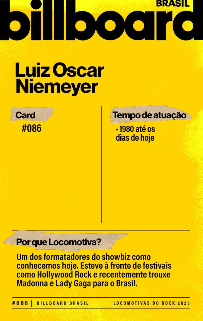 Baixe e CompartilheLuiz Oscar Niemeyer nasceu em meio a uma família de médicos. Mas aí vieram os Beatles… Nos anos 1980, ele, totalmente dedicado à música, foi trabalhar na Artplan, do empresário Roberto Medina. Uma de suas primeiras atribuições foi ser coordenador do primeiro Rock in Rio. De lá para cá Luiz produziu o festival Hollywood Rock, trouxe Paul McCartney para o Brasil, foi presidente da gravadora BMG e organizou alguns dos maiores megashows da temporada. E não dá mostras de querer parar.