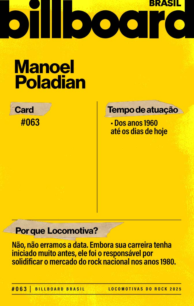 Baixe e CompartilheManoel Poladian está no mercado desde os anos 1960. Quando adentrou no universo do rock nacional, na década de 1980, ajudou a profissionalizar o mercado. Ganhou fama de Midas ao empresariar os grupos RPM e Capital Inicial e trouxe ao Brasil bandas como The Cure.