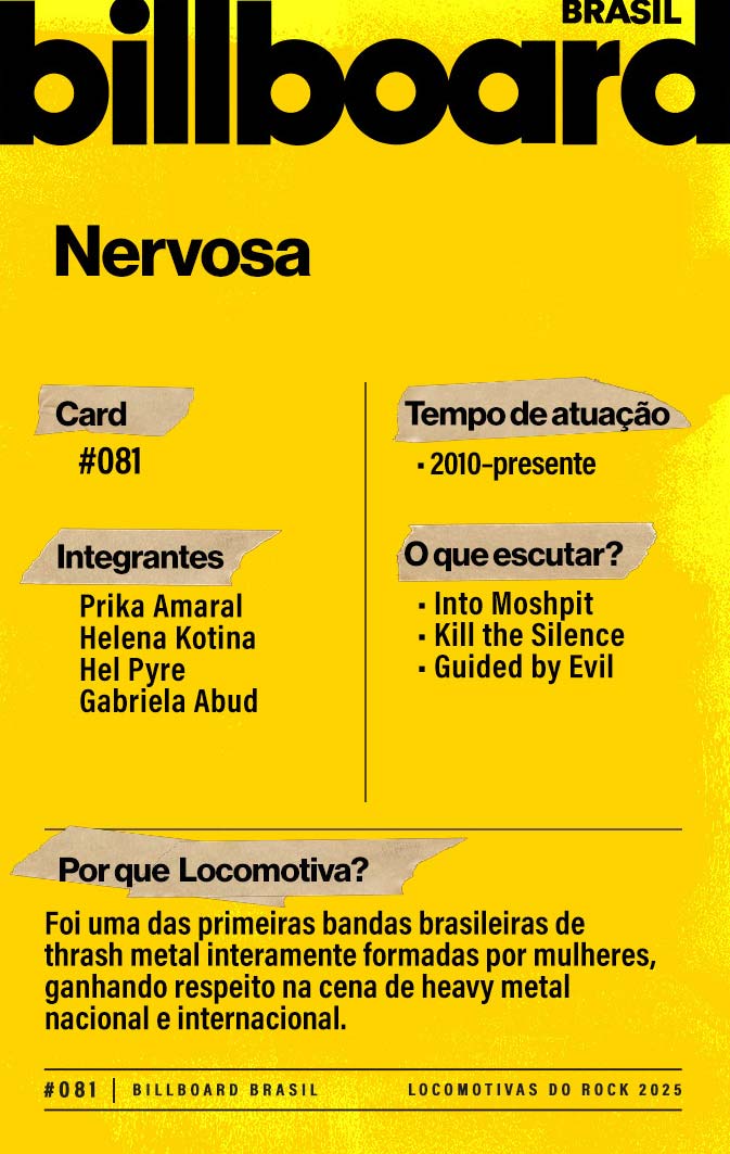 Baixe e CompartilheFormada inicialmente como um power trio feminino, Nervosa é uma das maiores referências do thrash/death metal moderno.