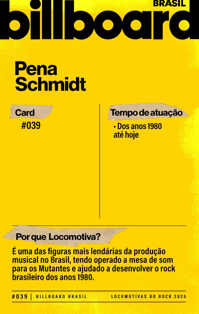 Baixe e CompartilhePena Schmidt colaborou com os Mutantes e operou o som de grandes festivais de rock no país. Sua principal colaboração, contudo, está na descoberta da pulsante cena roqueira paulistana dos anos 1980. Ele trouxe para a gravadora Warner nomes como Titãs, Ira! e Ultraje a Rigor. E ainda hoje está sempre aberto para o novo.