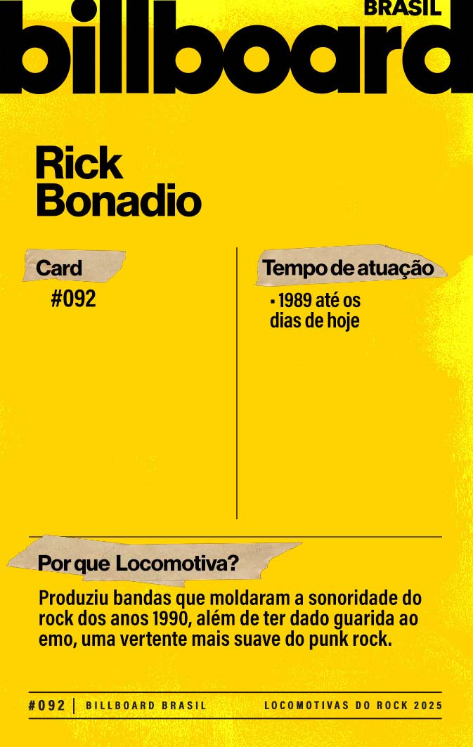 Baixe e CompartilheNos anos 1990, Rick Bonadio era produtor de bandas e intérpretes de rock cristão quando voltou suas atenções para o universo do rock. Descobriu – e produziu – os grupos Mamonas Assassinas e Charlie Brown Jr. Ele ainda criou um selo, o Arsenal, por onde lançou os grupos CPM 22, NxZero, Fresno, Tihuana e Hateen.