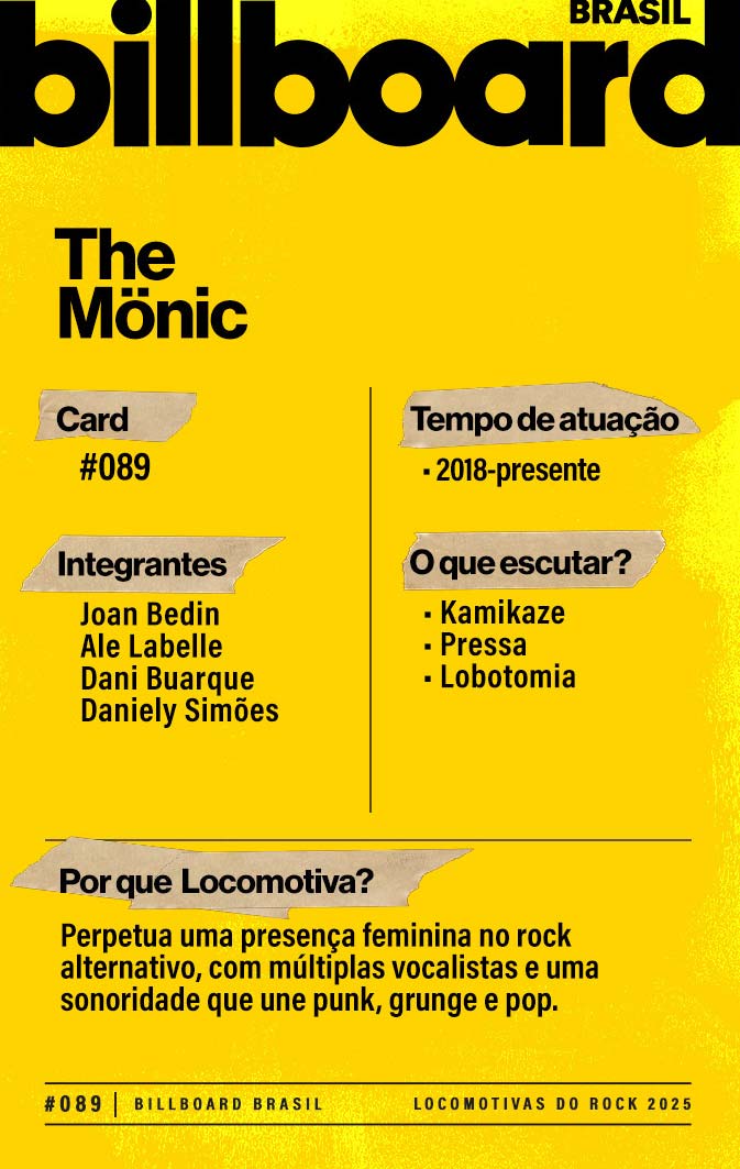 Baixe e CompartilheThe Mönic é uma banda brasileira de rock alternativo formada em 2018 em São Paulo. O quarteto inclui Ale Labelle (guitarra e voz), Dani Buarque (guitarra e voz), Joan Bedin (baixo e voz) e outros integrantes. Lançam "Deus Píci"o em 2019 com músicas em português e inglês, e desde então vem se apresentando em festivais no circuito indie.